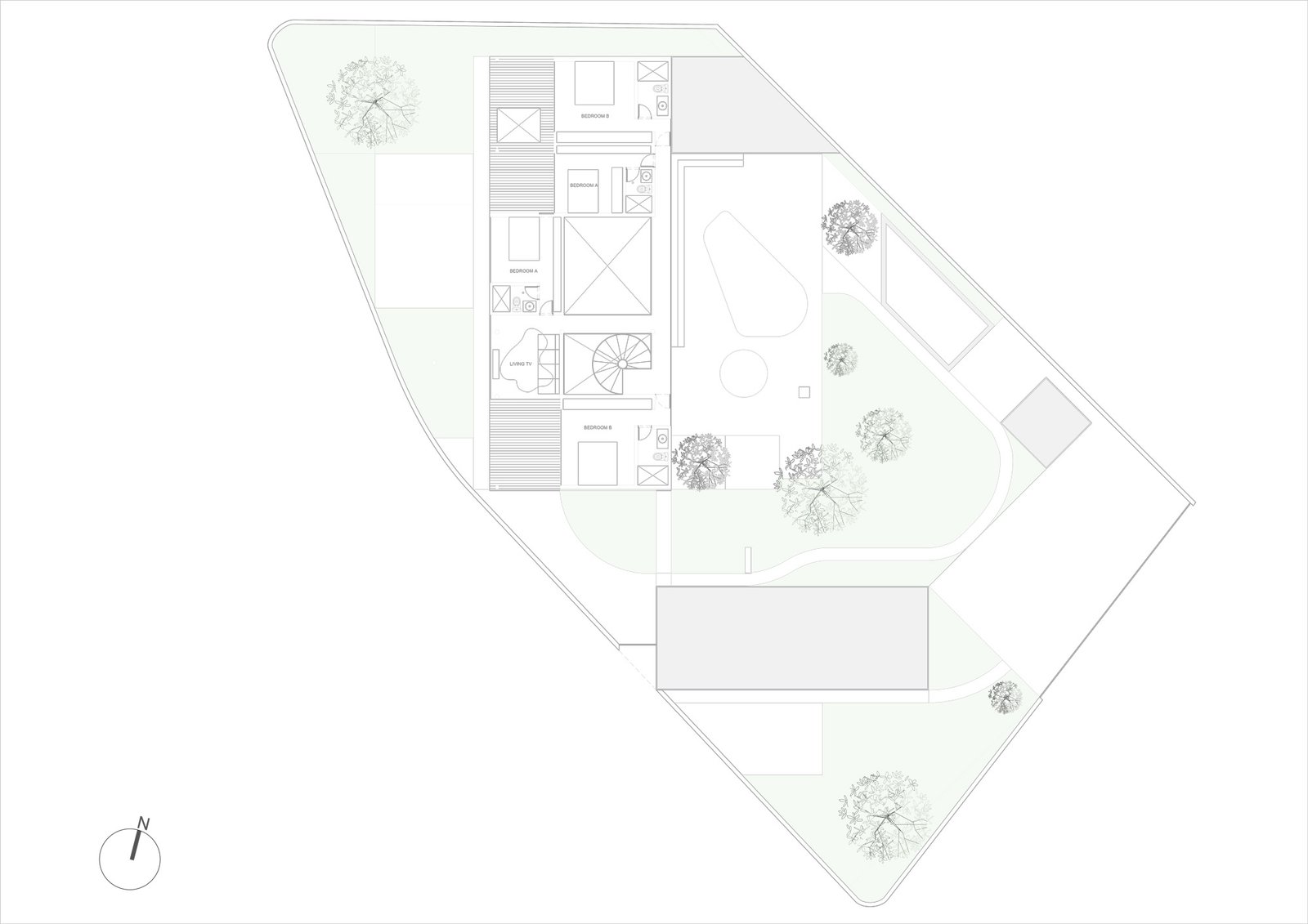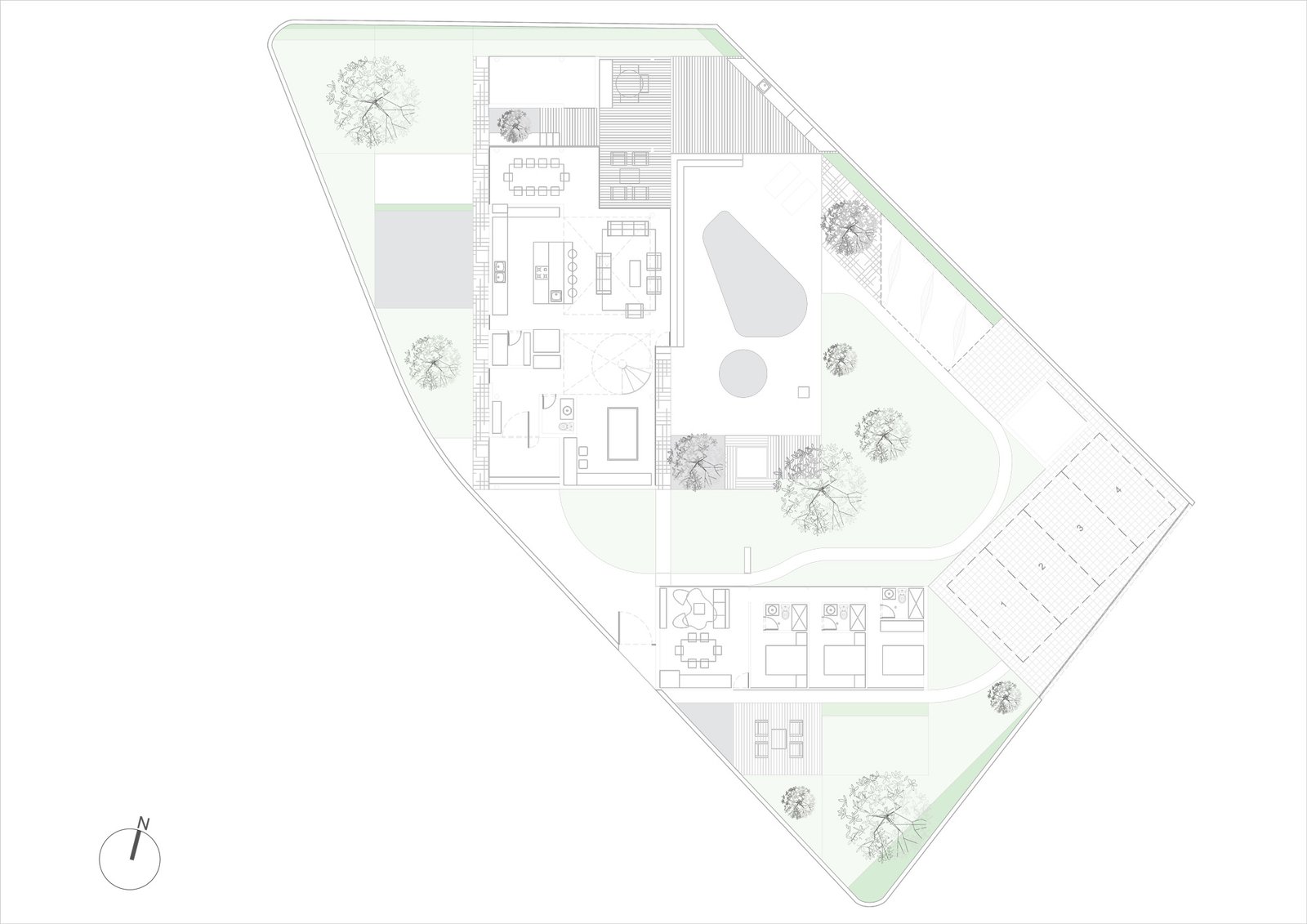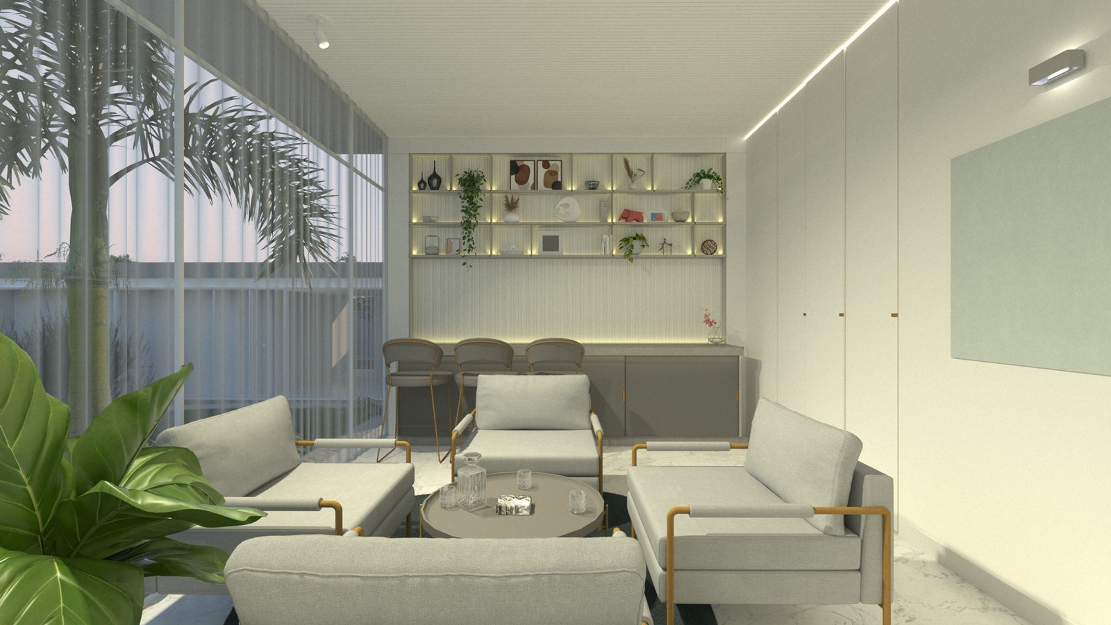 El proyecto se encuentra ubicado en la zona de Punta Blanca, localizado en un terreno de esquina adyacente al mar. Por la morfología del terreno, se busca adaptar el diseño para aprovechar de mejor manera la espacialidad, vistas y necesidades del cliente. El proyecto se encuentra compuesto por dos elementos, el primero un Pivote, en donde se desarrolla la vida más íntima de la familia, y un segundo elemento independiente la casa de invitados, ambos elementos se unifican por medio de las áreas sociales. La residencia familiar se desarrolla por medio de espacios de doble y triple altura, jardinerías y espacios comunes que buscan entregarle dinamismo a la ocupación del usuario. El espacio exterior funciona como anclaje visual de los espacios sociales de ambas casas, todas las habitaciones buscan su mirada hacia el mar, por lo cual se desarrolla un gran balcón continuo que logre captar la mayor cantidad de visuales e iluminación natural.